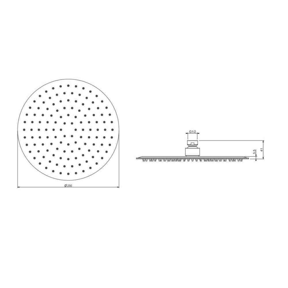 - Deszczownica Rain25 o średnicy 250 mm. z mocowaniem do ściany lub sufitu.