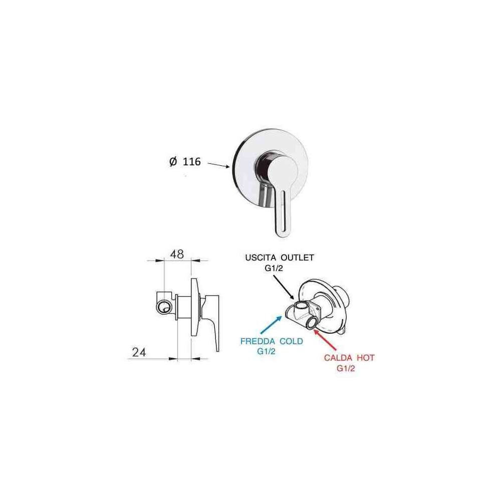 Jednouchwytowa bateria prysznicowa z płytką Daniel Rubinetterie Smart
