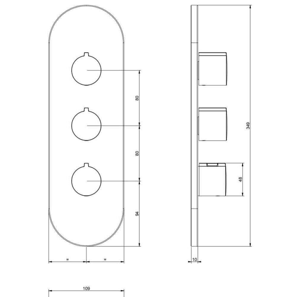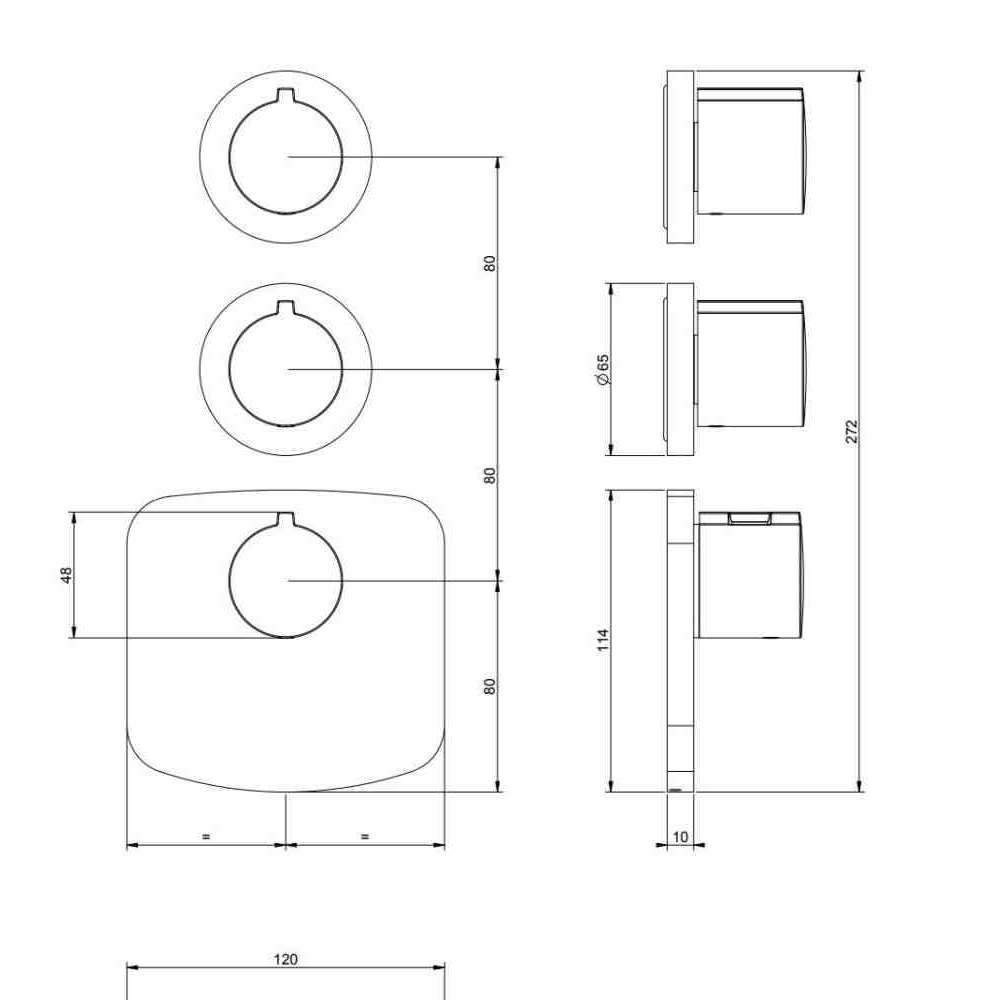 Tondo Wellness to metalowa termostatyczna bateria prysznicowa o wysokim przepływie z 2 niezależnymi wylotami. Montaż pionowy lub poziomy. Dostępne w różnych wykończeniach.