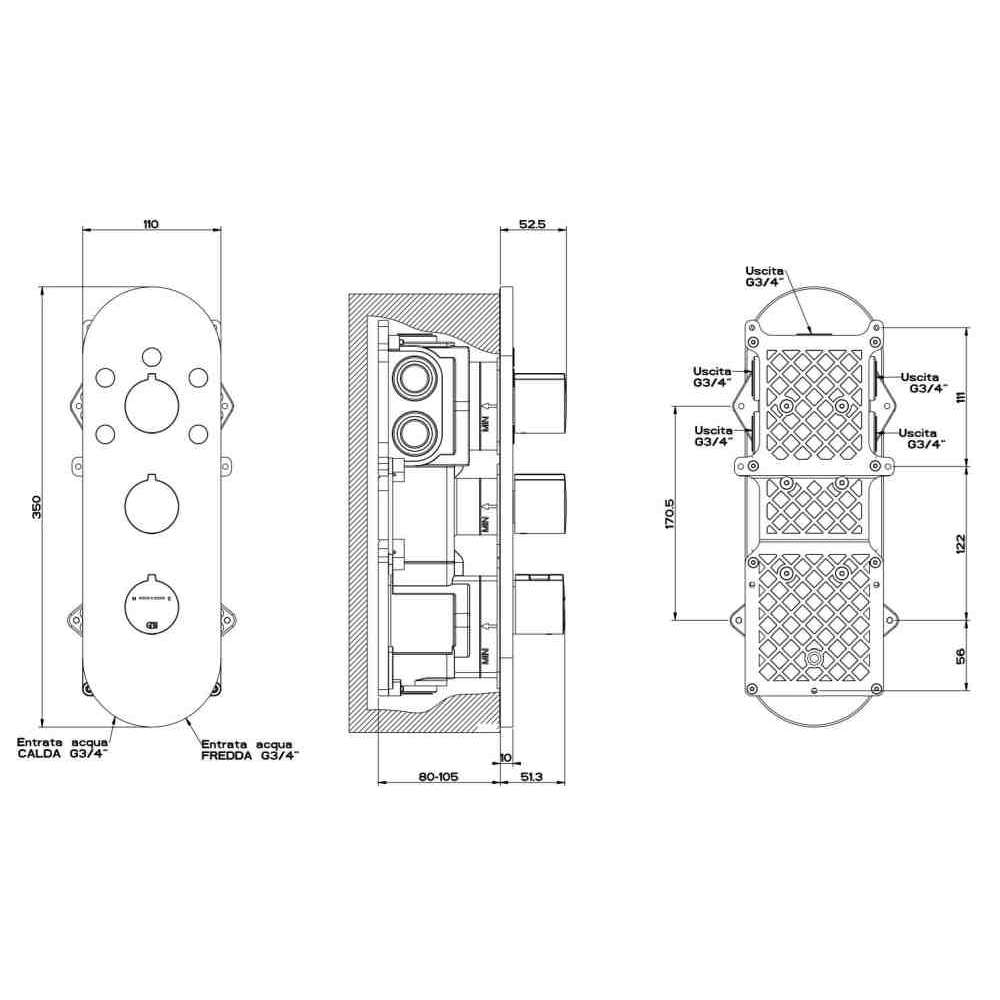 Gessi, Baterie prysznicowe, Baterie łazienkowe, Baterie prysznicowe, Nowoczesny styl Baterie prysznicowe, Metalowe baterie prysznicowe, Mosiądz Baterie prysznicowe, Chromowany mosiądz Baterie prysznicowe, 3-otworowe Baterie prysznicowe, Baterie prysznicowe, Baterie prysznicowe termostatyczne, Baterie prysznicowe z płytką, Baterie prysznicowe podtynkowe