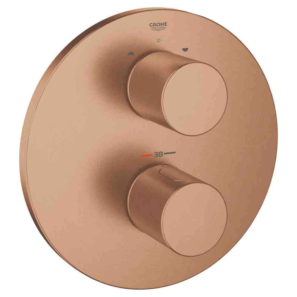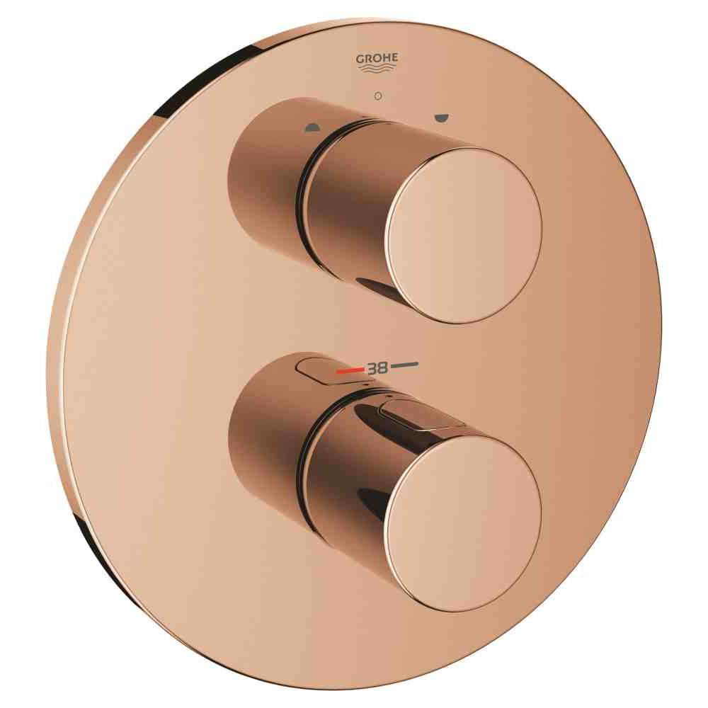 Grohtherm 3000 Cosmopolitan to bateria termostatyczna do wanny z prysznicem lub prysznicem z 2-drożnym przełącznikiem. Dostępne w wykończeniach: