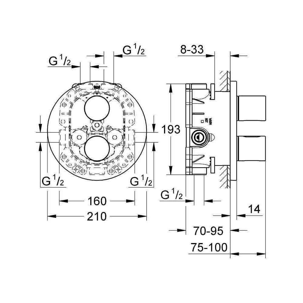 GROHE SafeStop, pokrętło z podziałką do ustawienia temperatury z blokadą bezpieczeństwa przy 38°