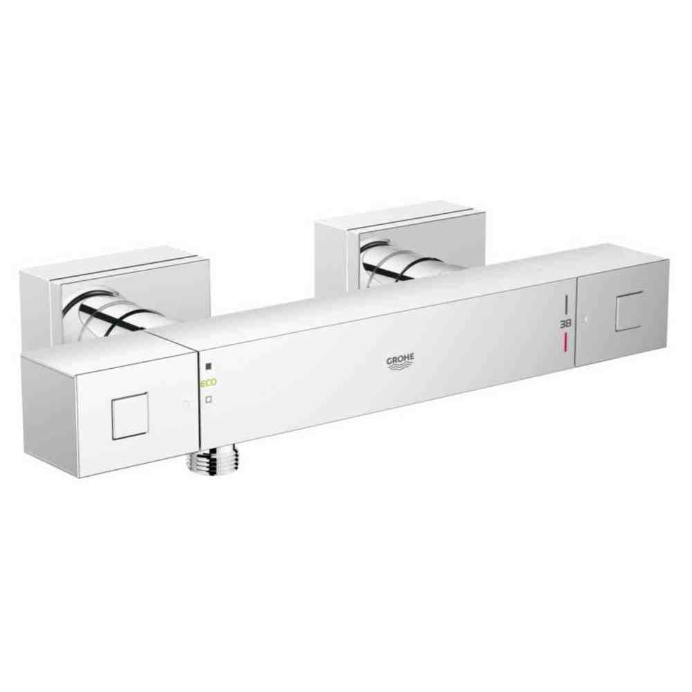 Grohe, Grohtherm Cube, Baterie prysznicowe, Baterie łazienkowe, Baterie prysznicowe, Nowoczesny Styl Baterie prysznicowe, Metalowe Baterie prysznicowe, Mosiądz Baterie prysznicowe, Chromowany mosiądz Baterie prysznicowe, Baterie prysznicowe, Baterie prysznicowe termostatyczne, Jednouchwytowe Baterie prysznicowe, Baterie prysznicowe z przełącznikiem, Zewnętrzne Baterie prysznicowe