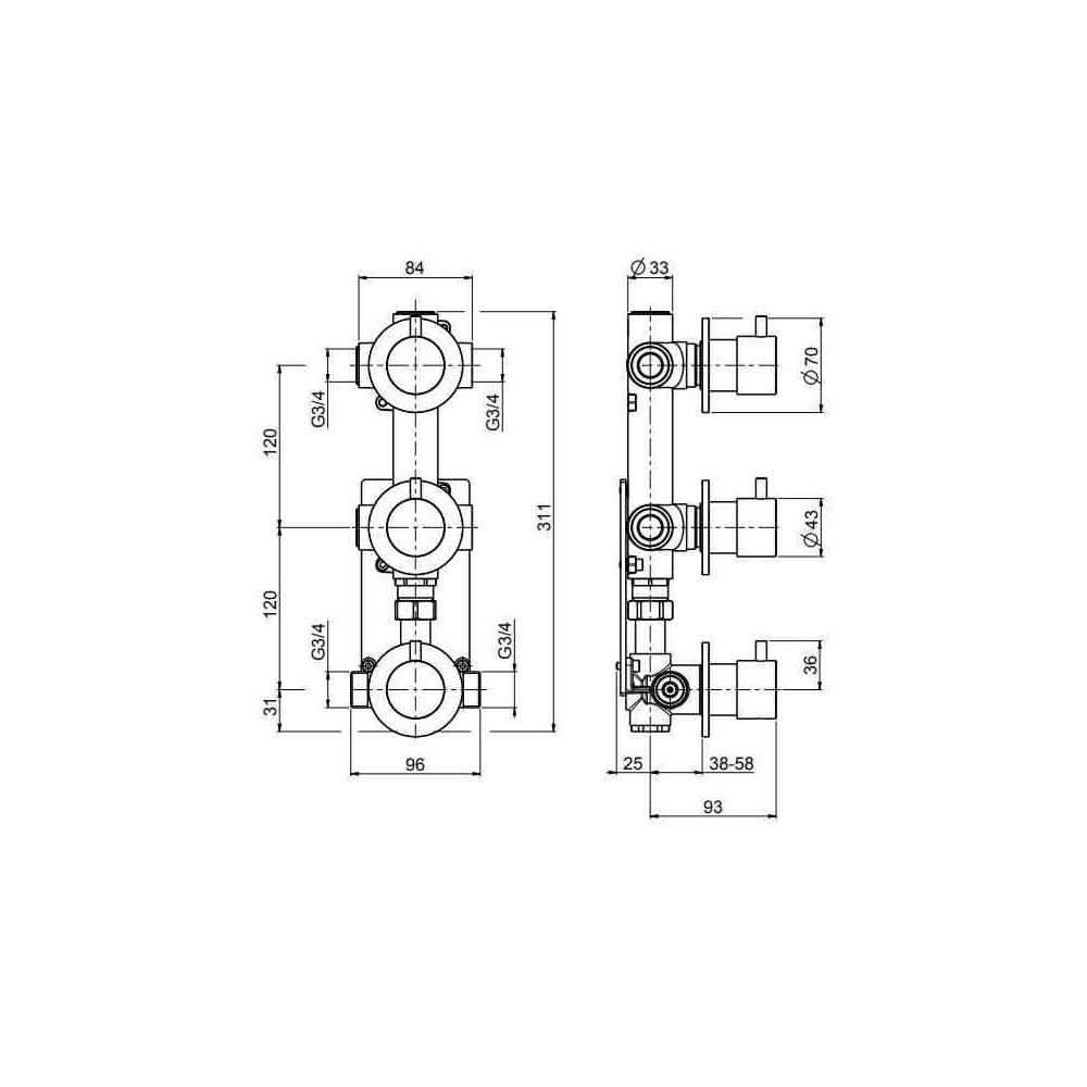 Bateria prysznicowa 3-otworowa, wpuszczana Quadrodesign Ottavo 12 49