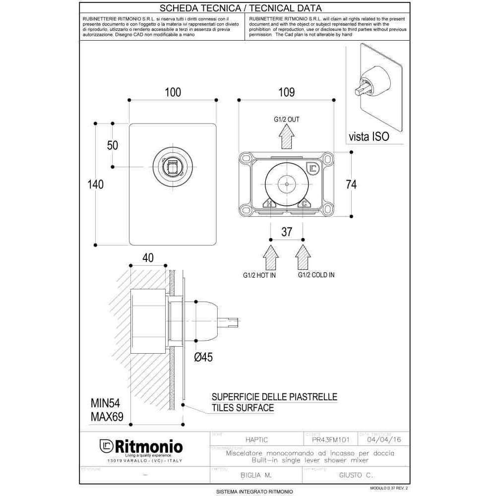 Wbudowana bateria prysznicowa z uchwytem z dźwignią Ritmonio Haptic