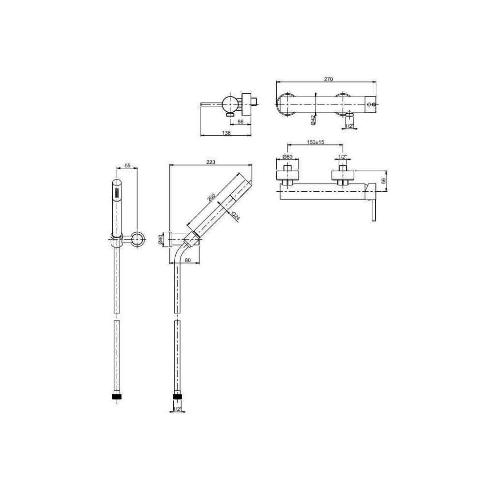Zewnętrzna mosiężna bateria prysznicowa z główką prysznicową Roberto Crolla Rubinetterie Domus