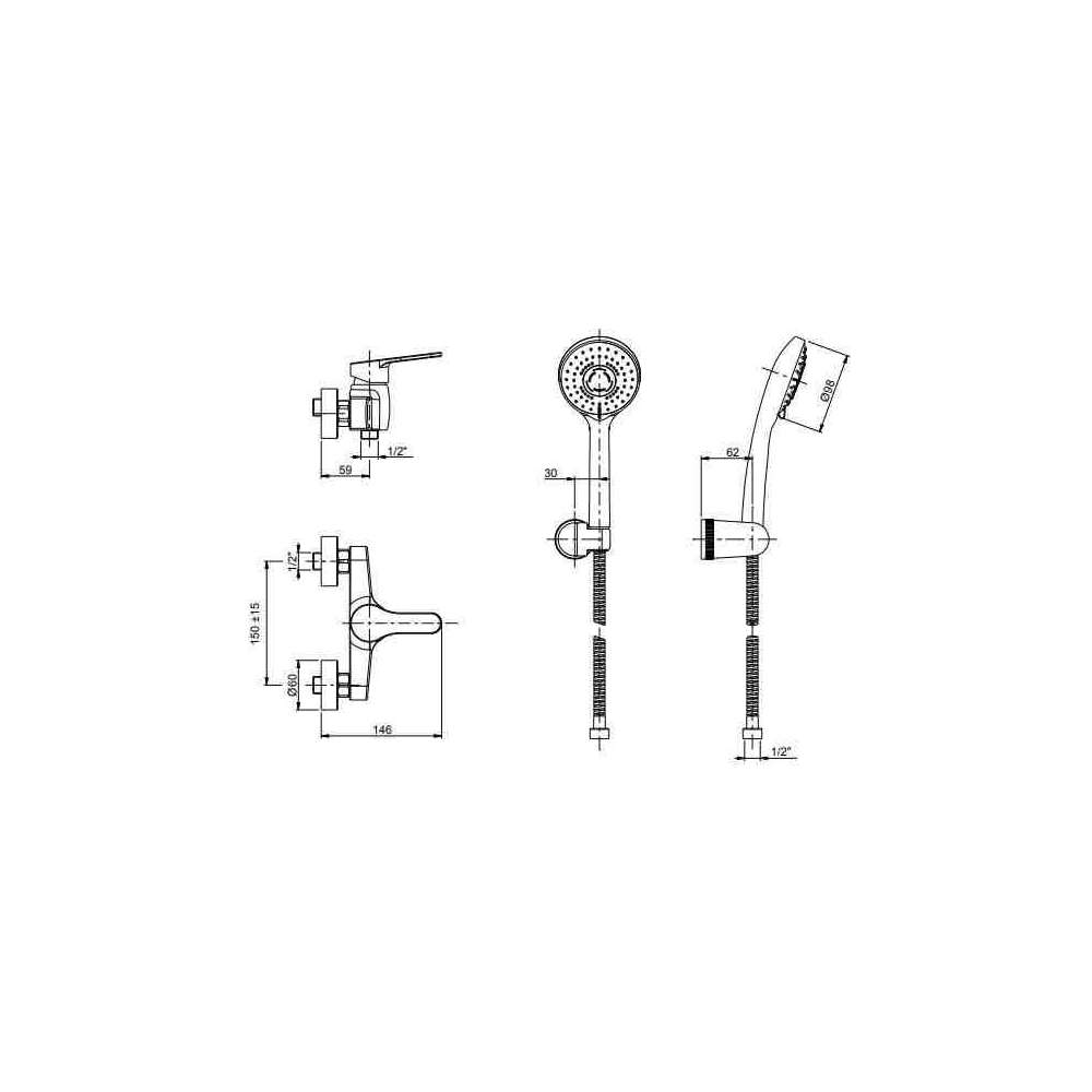 Zewnętrzna mosiężna bateria prysznicowa Roberto Crolla Rubinetterie Flash