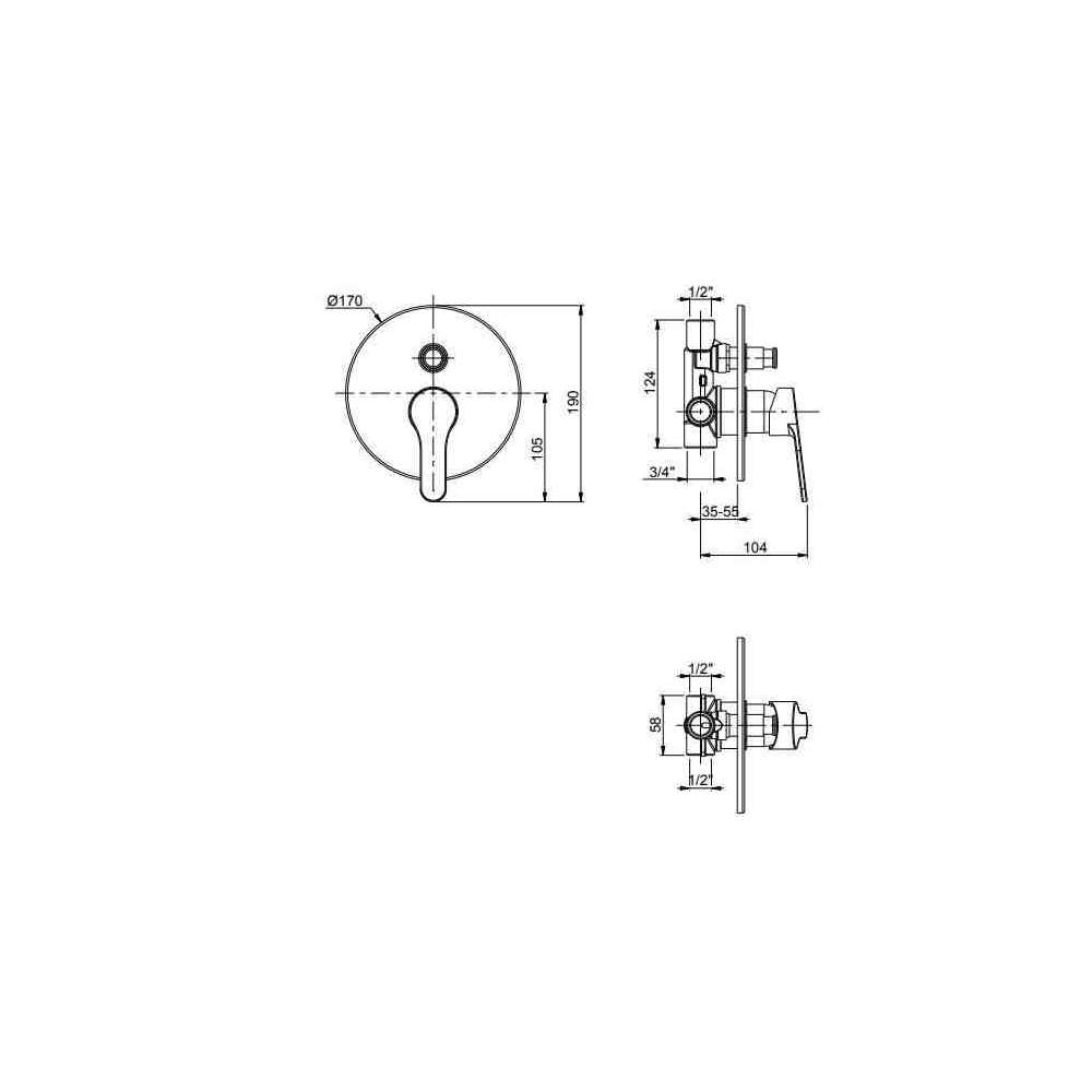 Mosiężna bateria prysznicowa z przełącznikiem Roberto Crolla Rubinetterie Flash