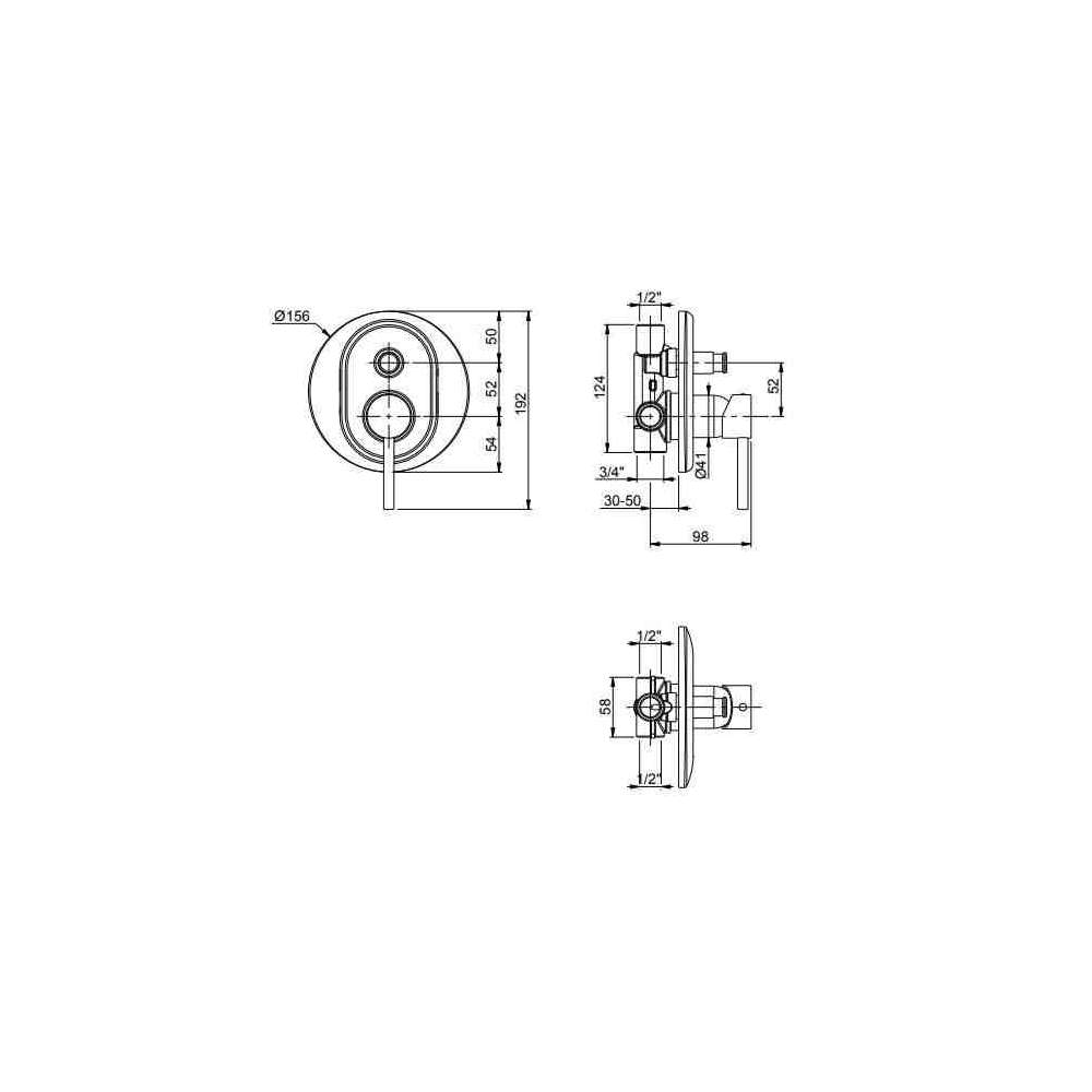 Mosiężna bateria prysznicowa wpuszczana w blat z płytką Roberto Crolla Rubinetterie Jackie