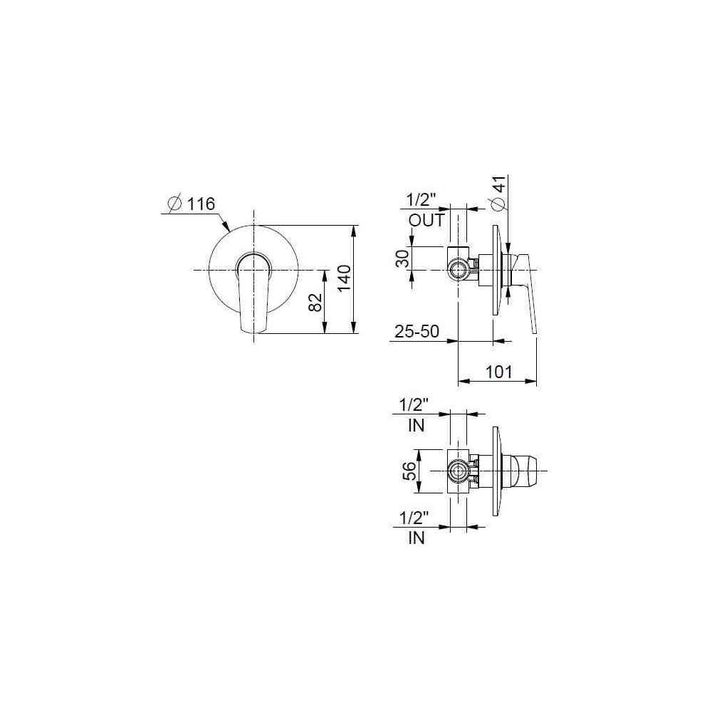 Bateria prysznicowa ścienna mosiężna z płytką Roberto Crolla Rubinetterie Spazio
