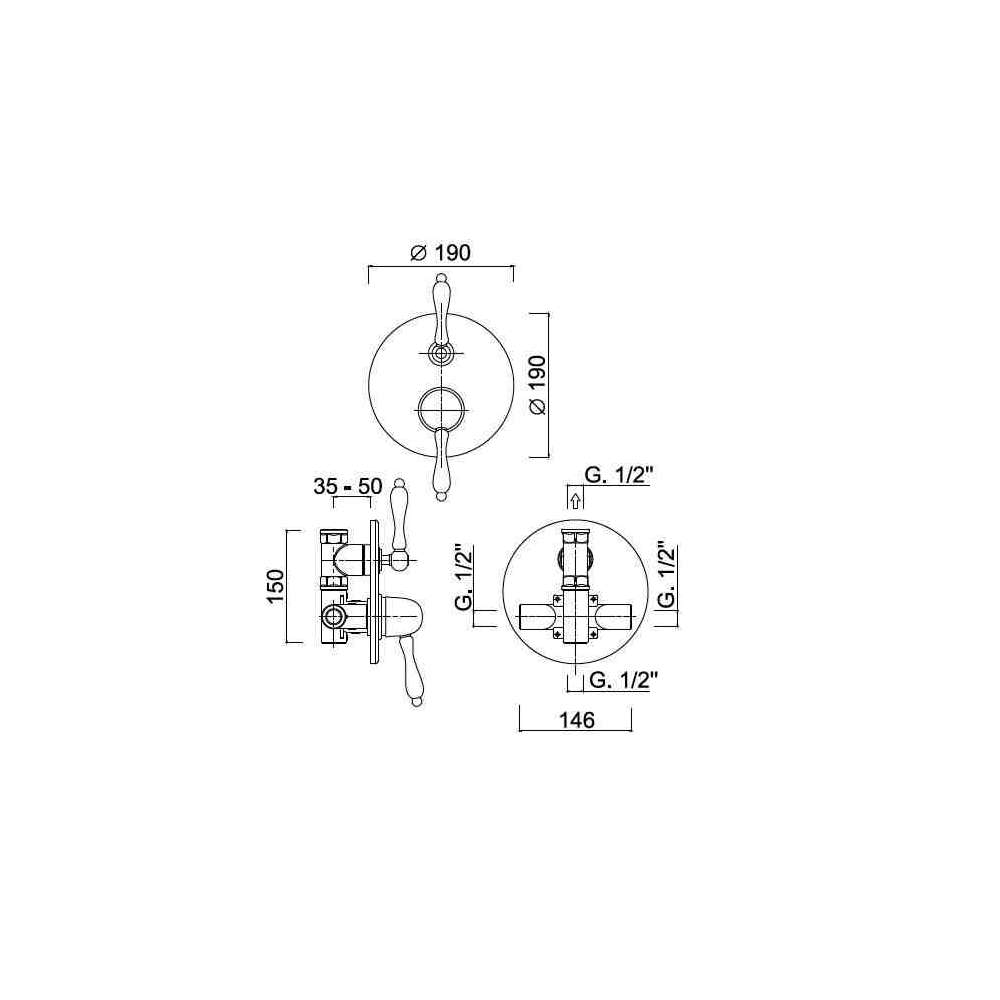 Bateria prysznicowa z przełącznikiem Rubinetteria Giulini Pragamix - Pragamix Crystal - F7511-3