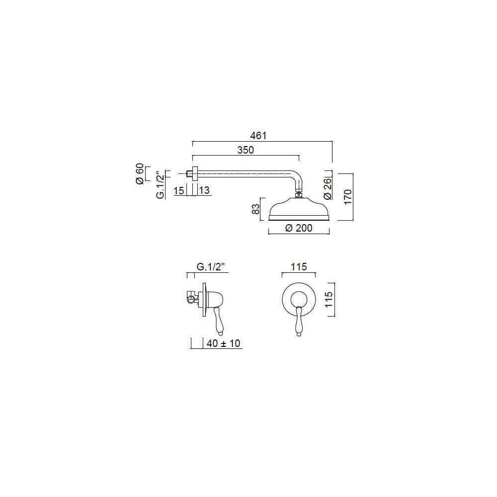 Zestaw prysznicowy 2-otworowy z głowicą Rubinetteria Giulini Pragamix - Pragamix Crystal - F7515WB