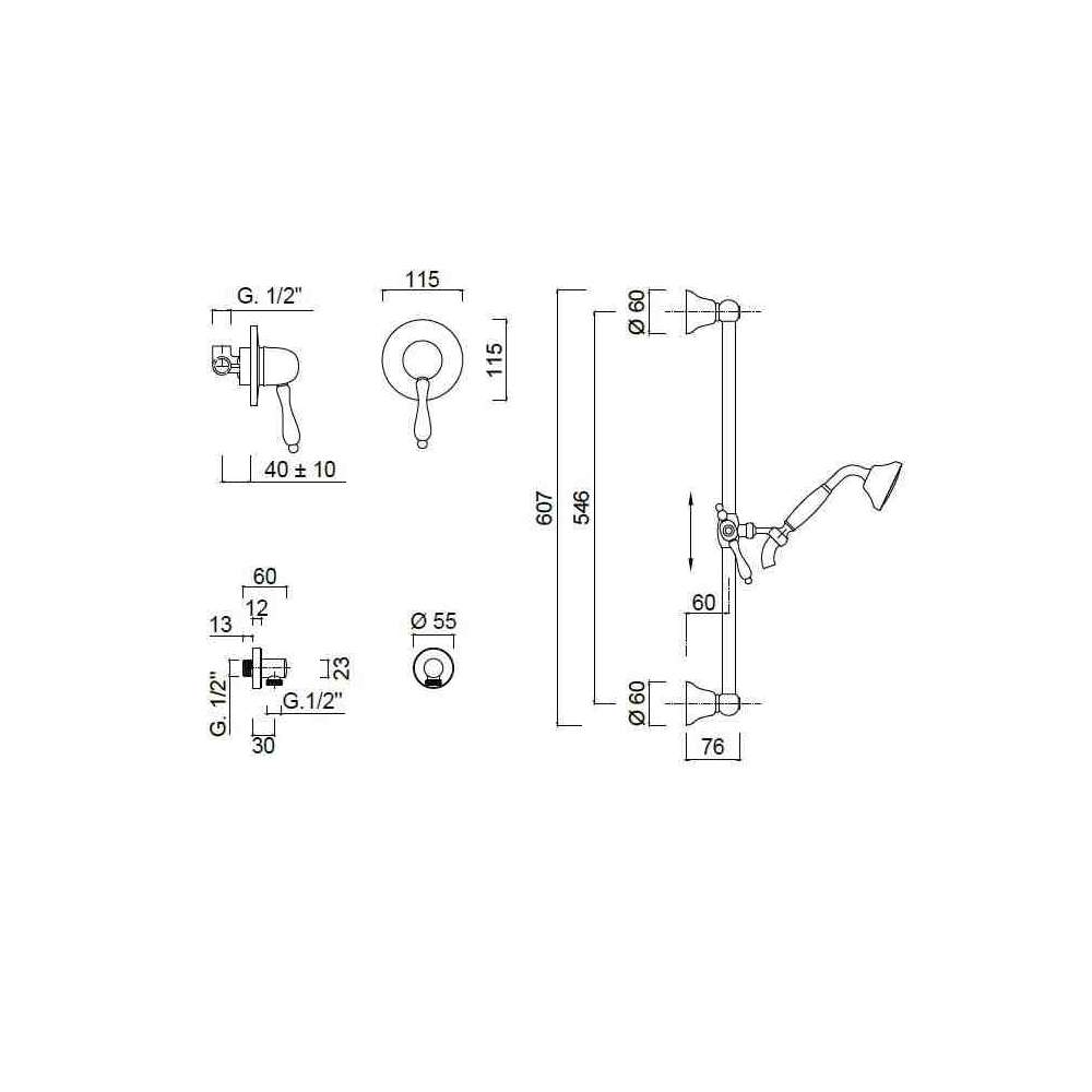 Zestaw prysznicowy z główką prysznicową Rubinetteria Giulini Pragamix - Pragamix Crystal - F7515WS