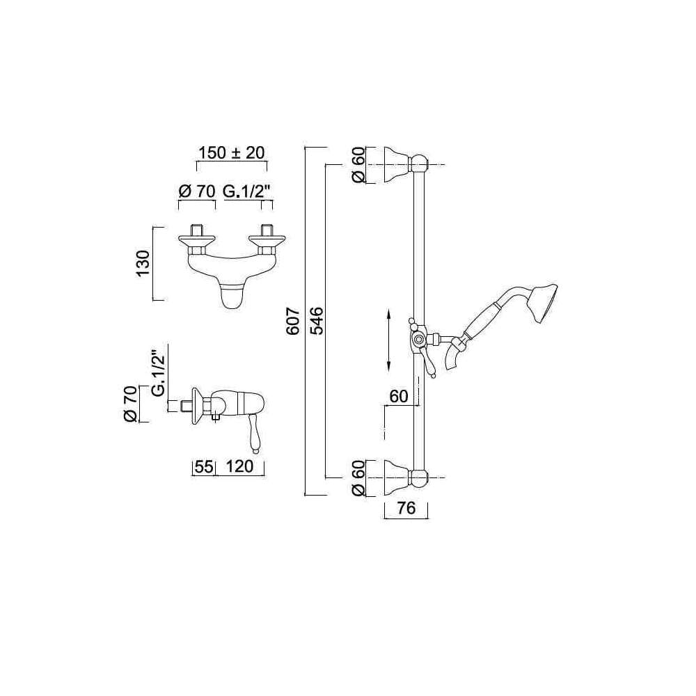 Jednouchwytowa bateria prysznicowa z główką prysznicową Rubinetteria Giulini Pragamix - Pragamix Crystal - F7524WS