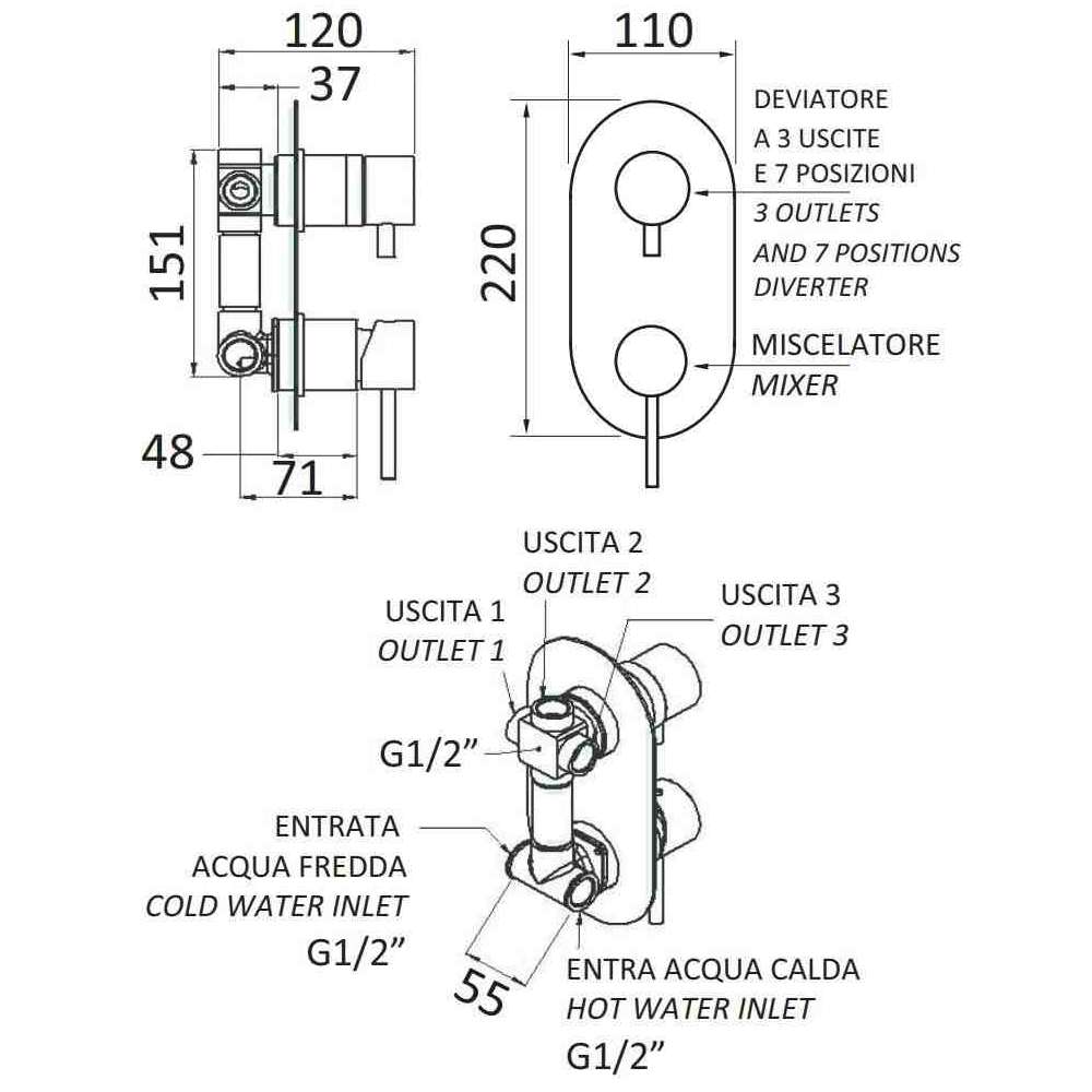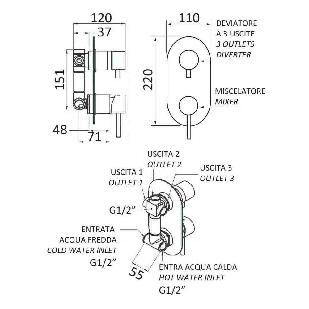 Styl współczesny Metalowa bateria prysznicowa wpuszczana w blat Rubinetterie Mariani Ultraminimal
