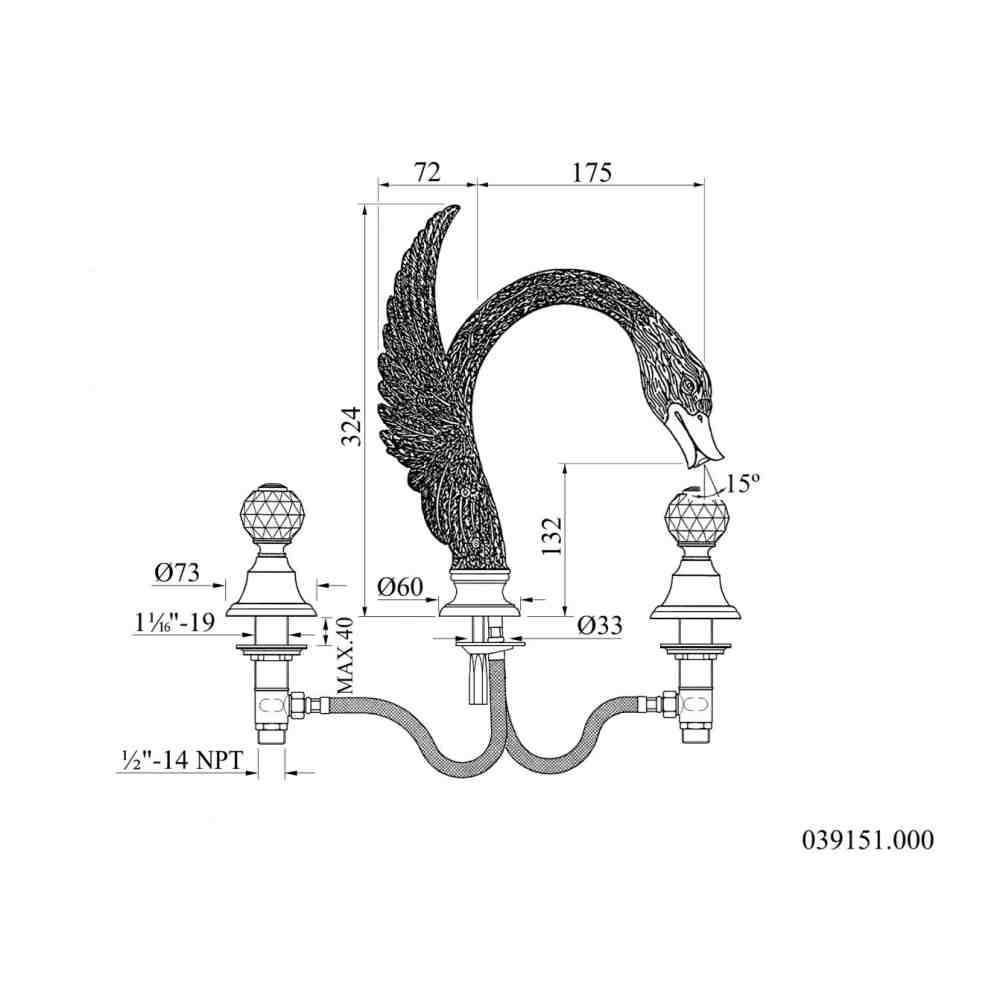 Bateria umywalkowa 3-otworowa z kryształami Swarovski®. Bronces Mestre Antartica Swan