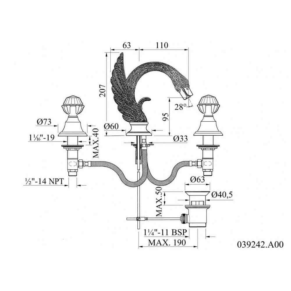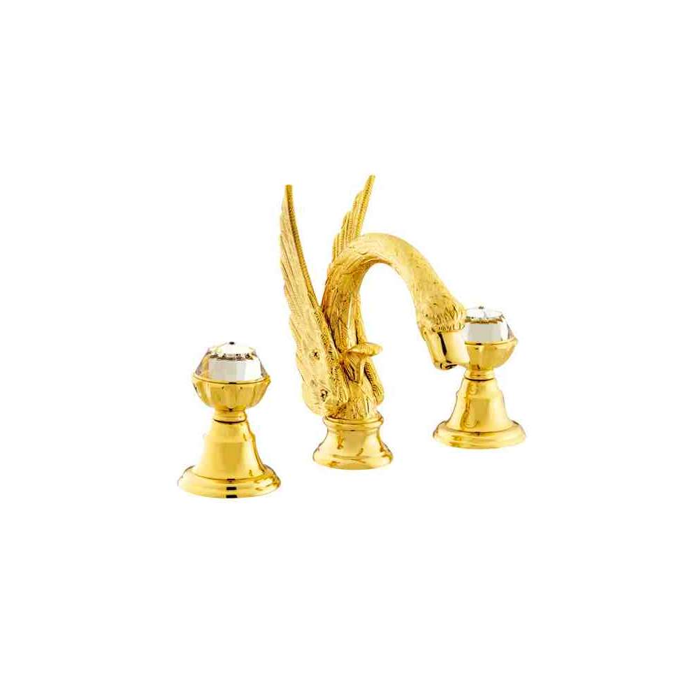 Bateria umywalkowa 3-otworowa z kryształami Swarovski®. Bronces Mestre Antartica Swan