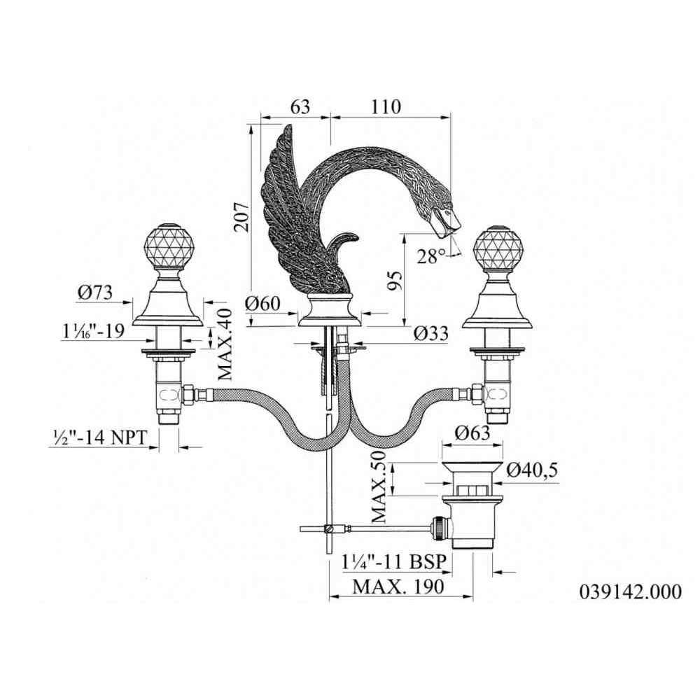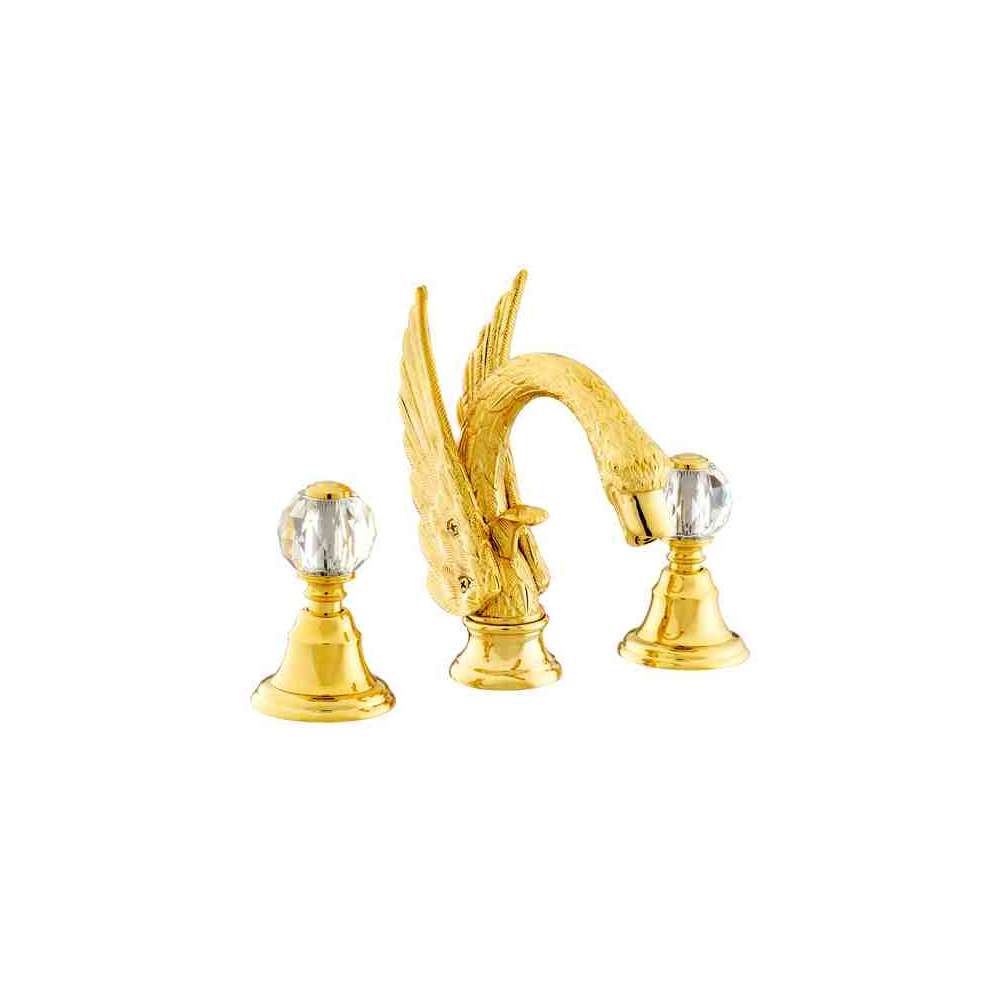 Bateria umywalkowa 3-otworowa z kryształami Swarovski®. Bronces Mestre Antartica Swan