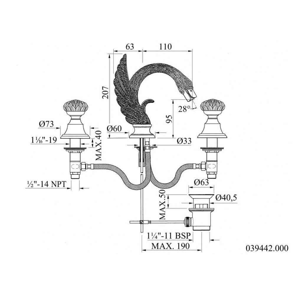 Bateria umywalkowa 3-otworowa Bronces Mestre Antartica Swan