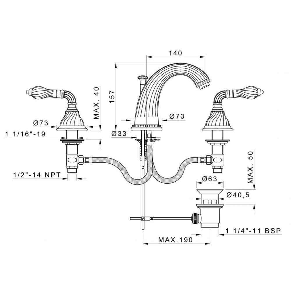 Bateria umywalkowa 3-otworowa, wykończenie polerowane Bronces Mestre 233501.SL00.50