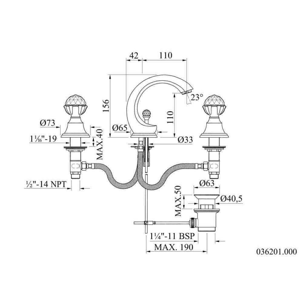 Bateria umywalkowa 3-otworowa z kryształami Swarovski®. Bronces Mestre Atlantica