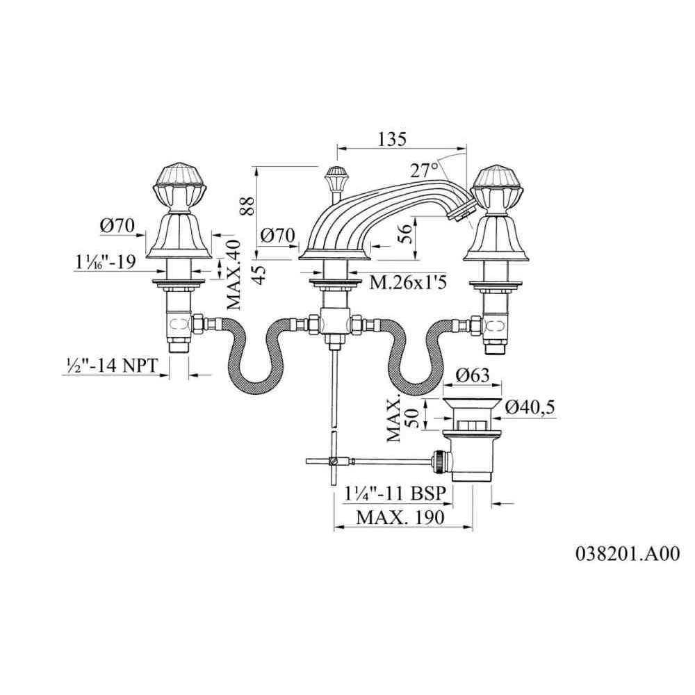 Bateria umywalkowa 3-otworowa z kryształami Swarovski®. Bronces Mestre Indica