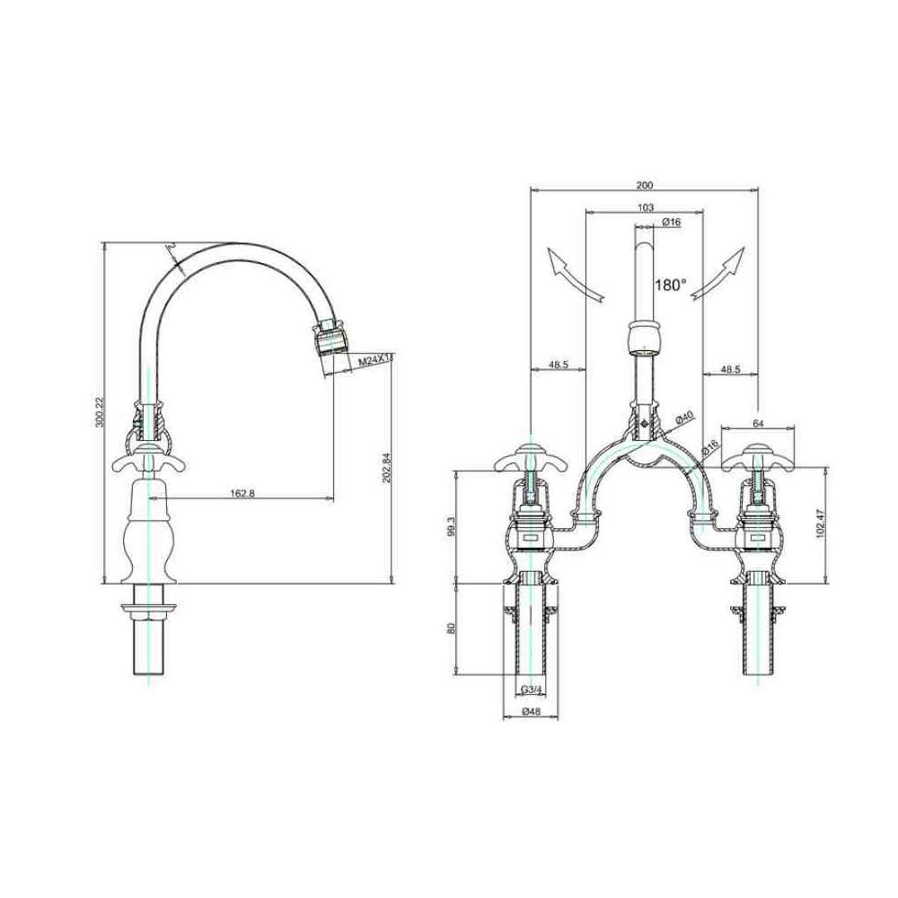 Bateria mostkowa nablatowa z perlatorem Burlington Bathrooms ANGLESEY