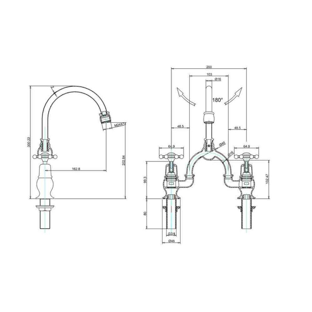 Burlington Łazienki, Baterie umywalkowe, Baterie łazienkowe, Bateria umywalkowa, Baterie umywalkowe Classic Style, Baterie umywalkowe metalowe, Baterie umywalkowe Mosiądz, Baterie umywalkowe 2-otworowe, Baterie umywalkowe nablatowe, Armatura mostkowa, Baterie umywalkowe z perlatorem, Baterie umywalkowe z indywidualnymi rozetami, Baterie umywalkowe bez odpadów