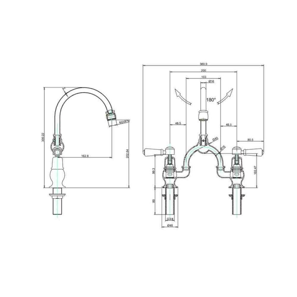Bateria mostkowa nablatowa Burlington Bathrooms KENSINGTON