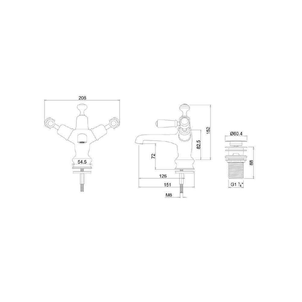 1-otworowa bateria umywalkowa z automatycznym odpływem Burlington Bathrooms KENSINGTON REGENT