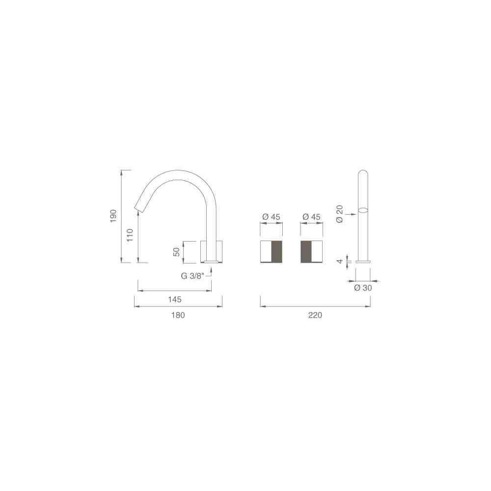 3-otworowa bateria umywalkowa ze stali nierdzewnej z regulowaną wylewką Ceadesign Duet 12