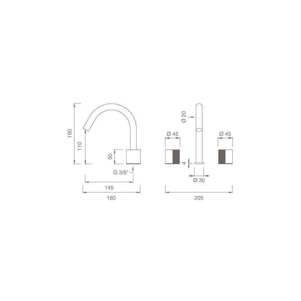 3-otworowa bateria umywalkowa ze stali nierdzewnej z regulowaną wylewką Ceadesign Duet 14