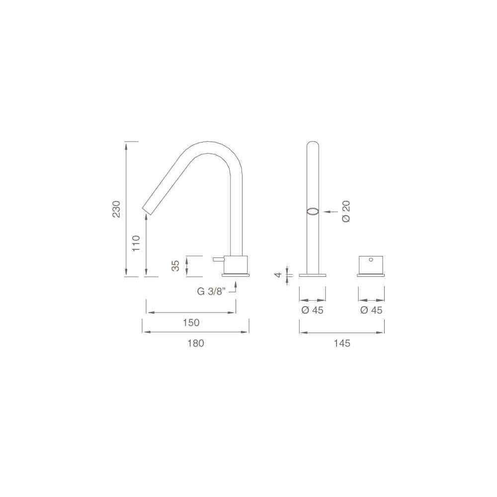 2-otworowa bateria umywalkowa nablatowa ze stali nierdzewnej Ceadesign Gradi 20