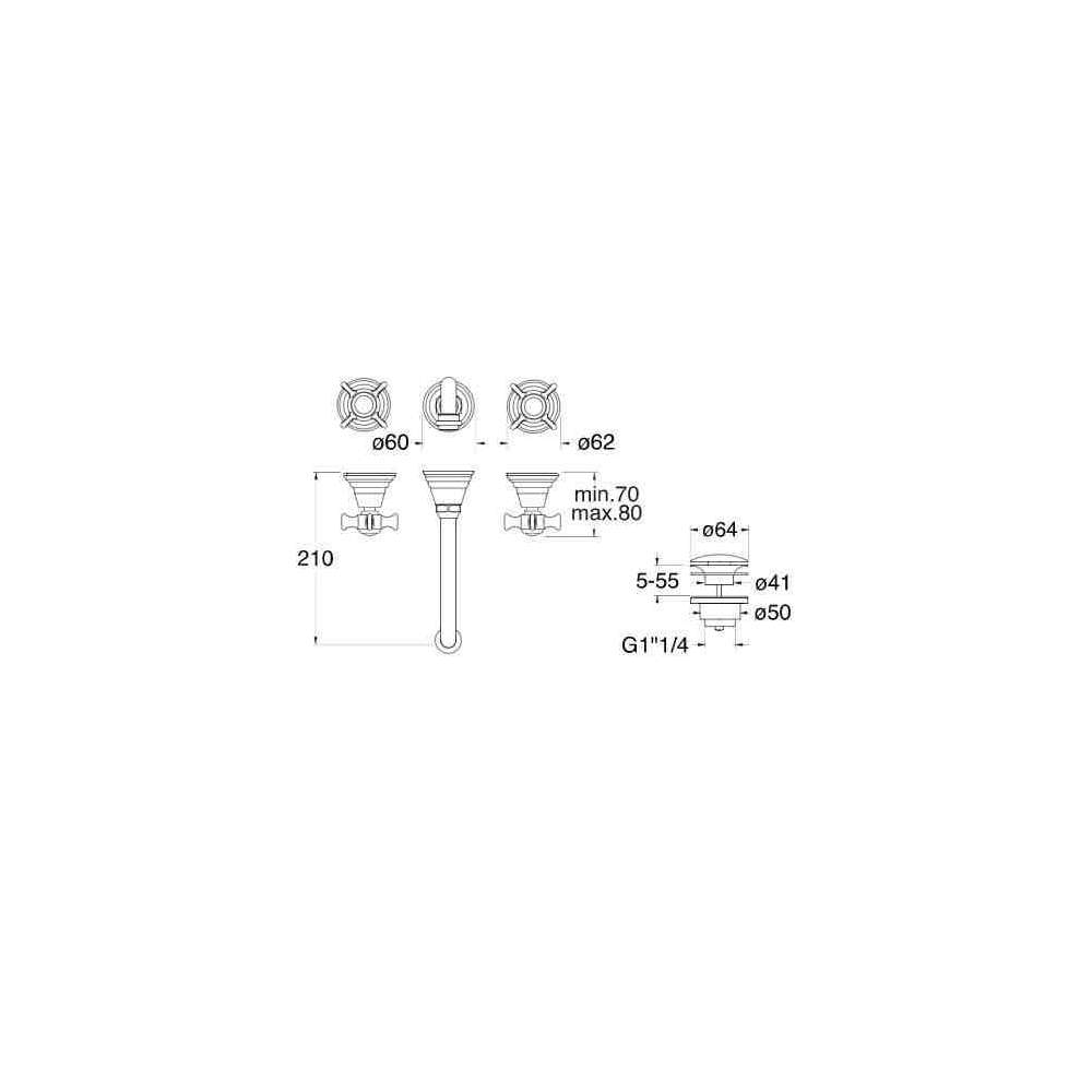Bateria umywalkowa ścienna 3-otworowa Cristina Rubinetterie Canova CRICN242