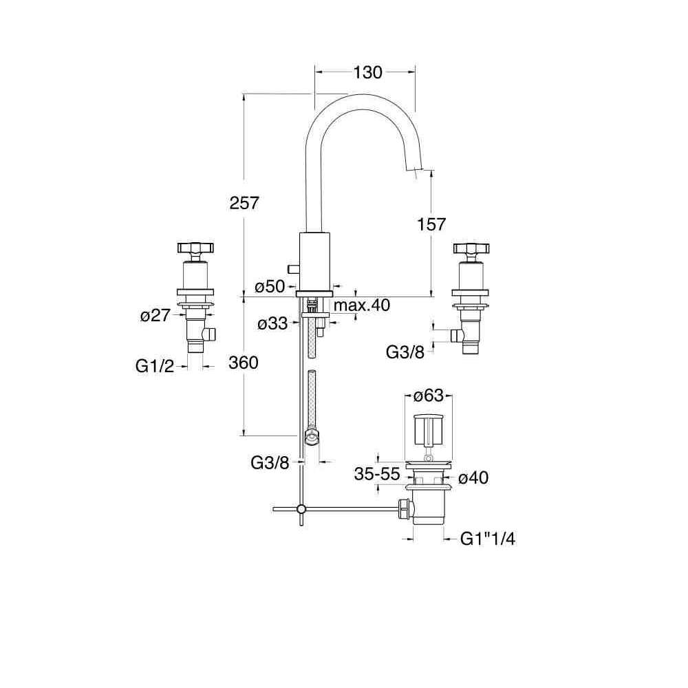 Bateria umywalkowa nablatowa 3-otworowa Cristina Rubinetterie Cross Road CRICR205