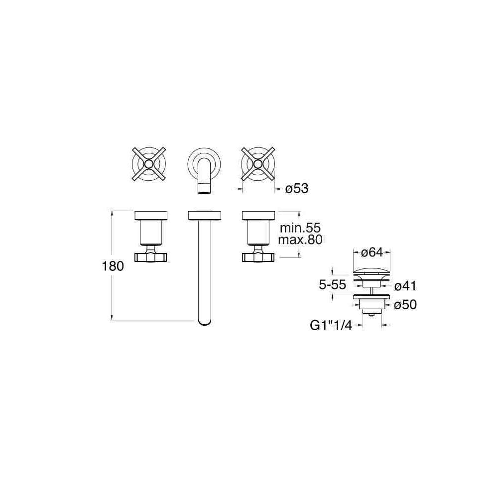 Bateria umywalkowa ścienna 3-otworowa Cristina Rubinetterie Cross Road CRICR242