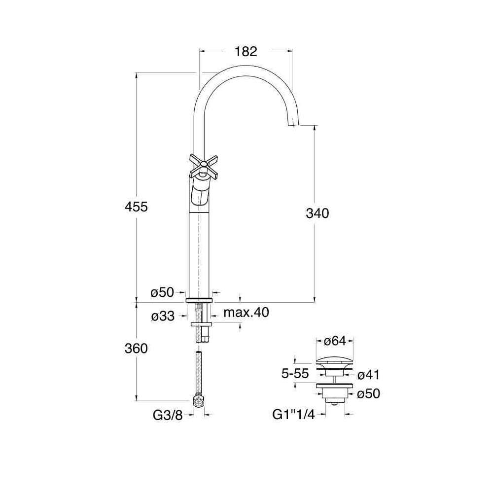 Bateria umywalkowa nablatowa 1-otworowa z automatycznym odpływem Cristina Rubinetterie Cross Road CRICR248
