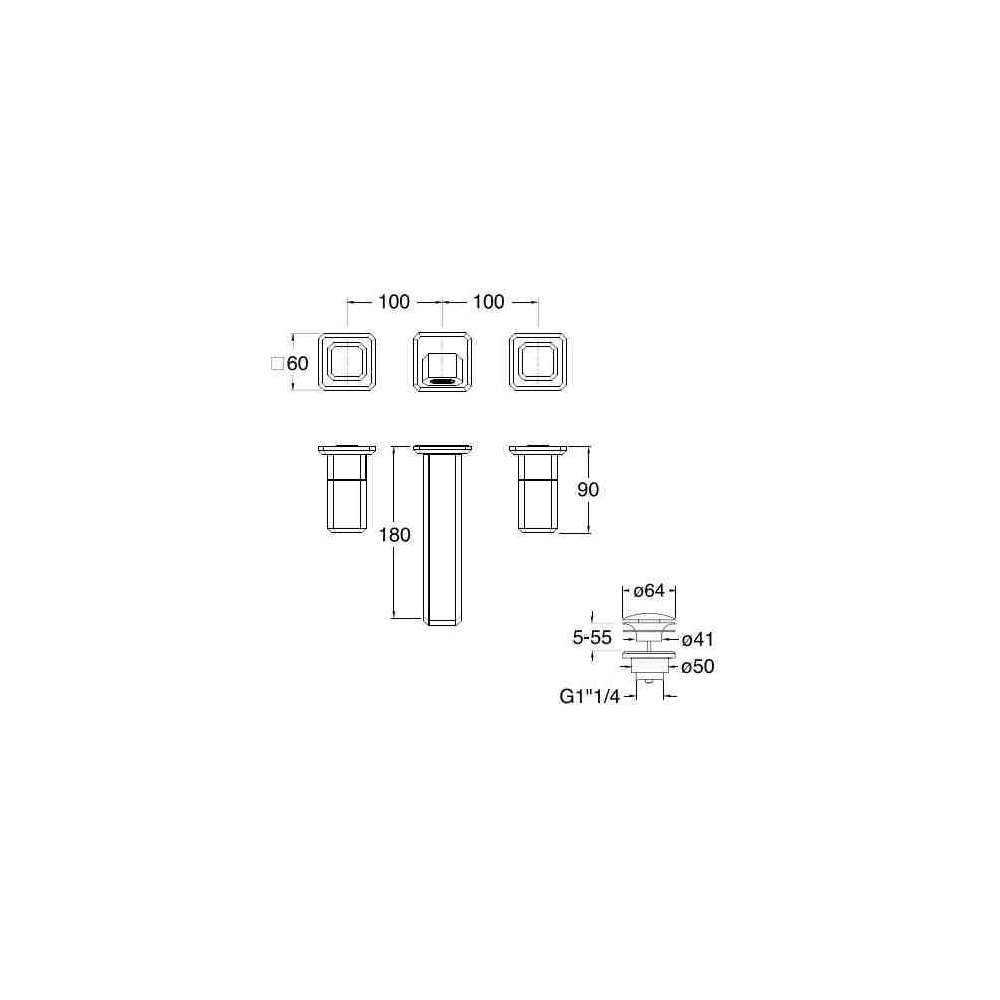 Bateria umywalkowa ścienna 3-otworowa Cristina Rubinetterie Italy CRIIT242