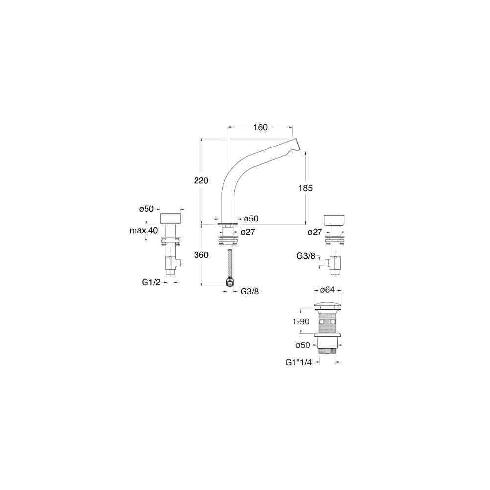 3-otworowa bateria umywalkowa ze stali nierdzewnej Cristina Rubinetterie Sx CRISx205