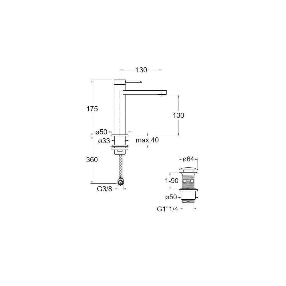 Bateria umywalkowa nablatowa jednouchwytowa Cristina Rubinetterie Unix CRIUX223
