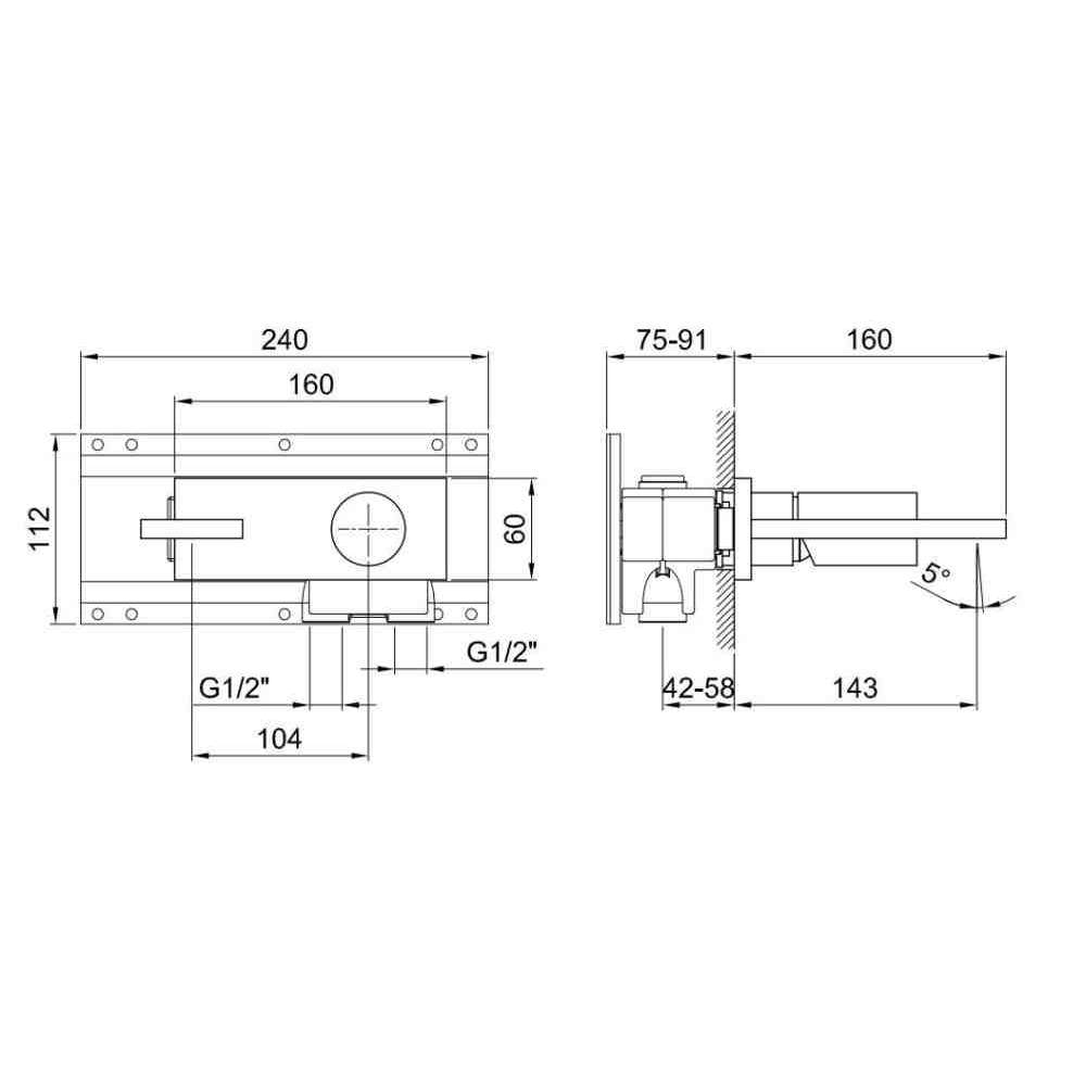 Bateria umywalkowa ścienna z płytką