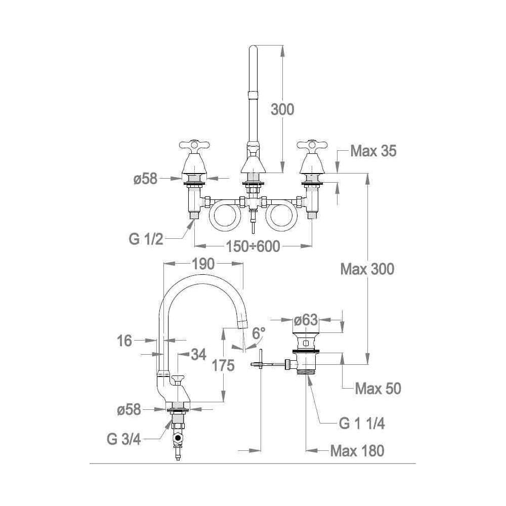 Bateria umywalkowa nablatowa z mosiądzu chromowanego Fir Italia Alison 33 - 3312345
