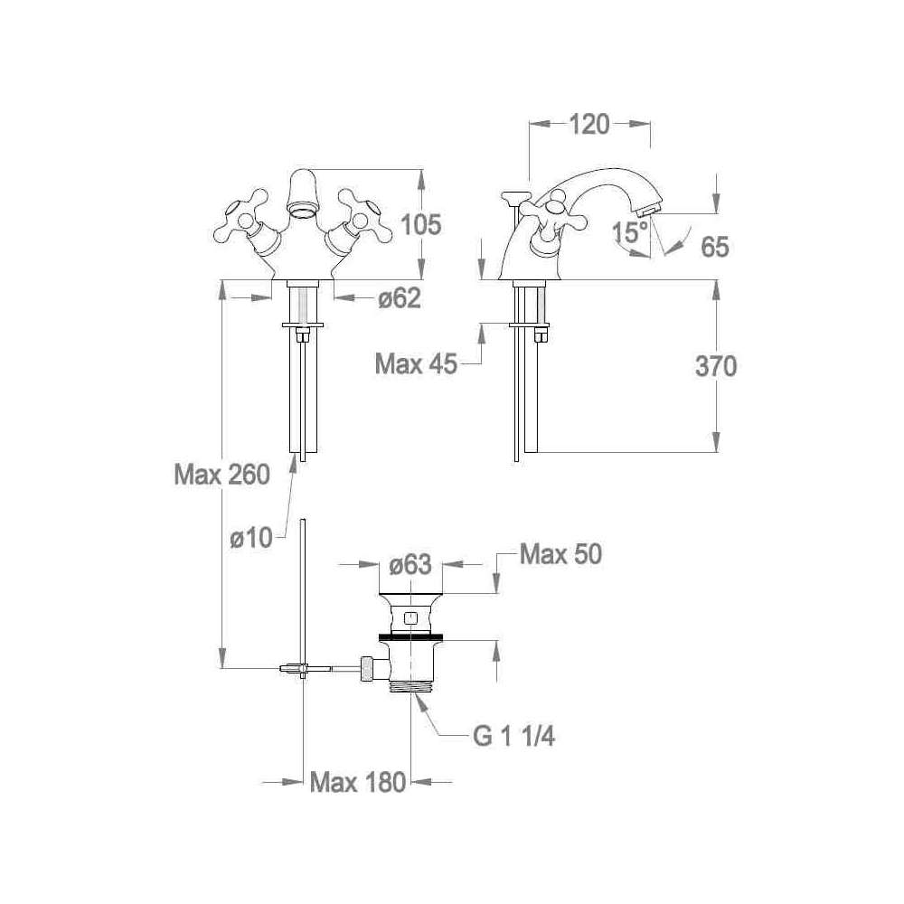 Bateria umywalkowa nablatowa z mosiądzu chromowanego Fir Italia Alison 33 - 3313185