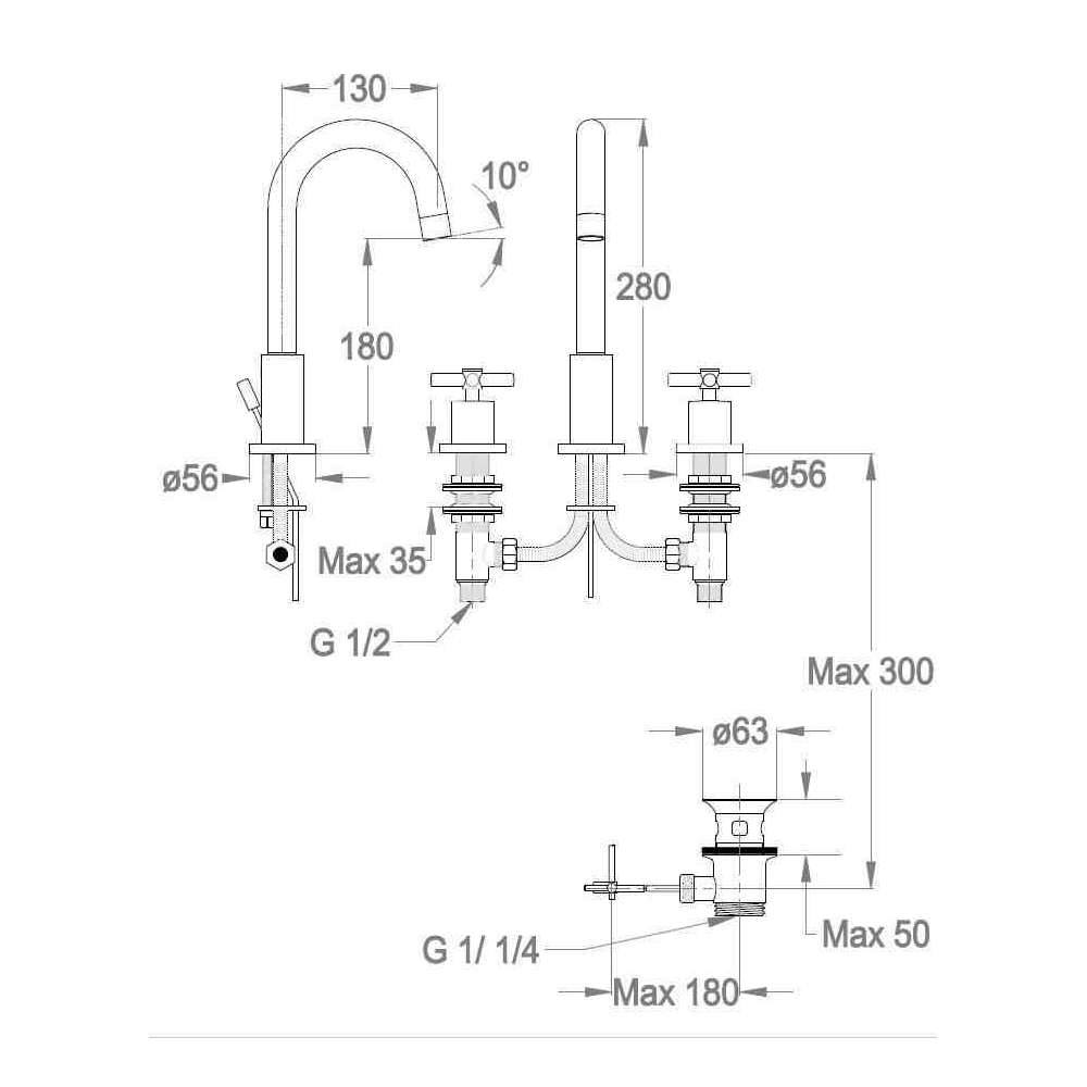 Bateria umywalkowa nablatowa 3-otworowa z perlatorem Fir Italia Cora 35 - 3512365