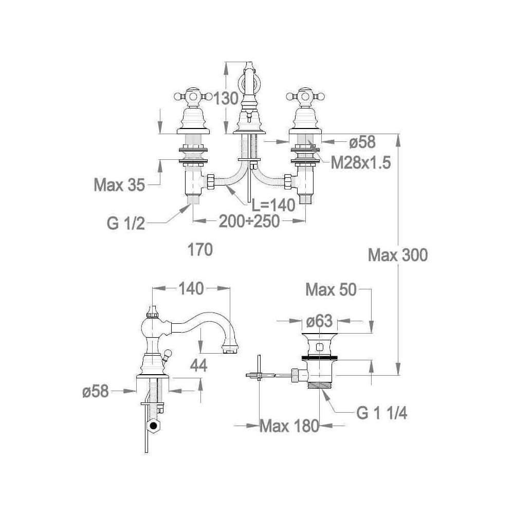 Bateria umywalkowa nablatowa 3-otworowa Fir Italia Melrose 20 - 2012205