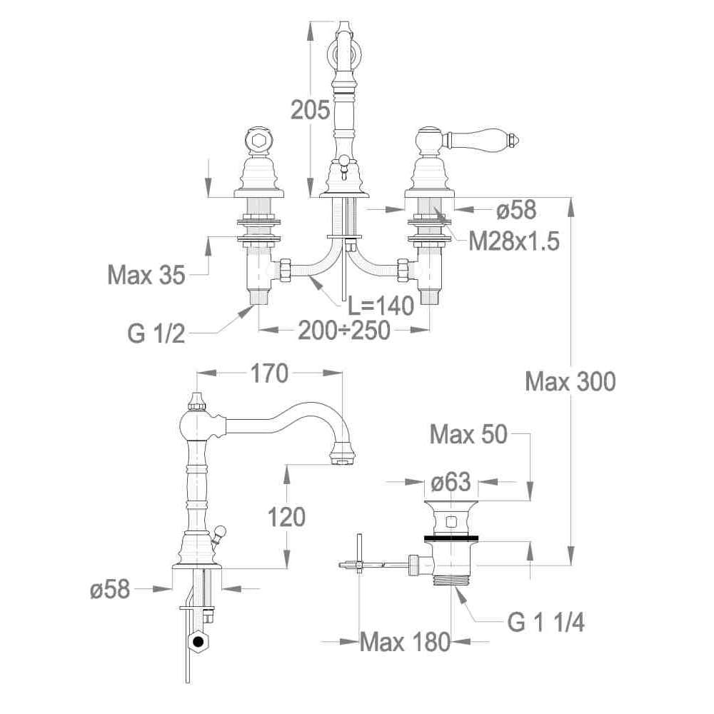 Bateria umywalkowa nablatowa 3-otworowa Fir Italia Melrose 21 - 2112215