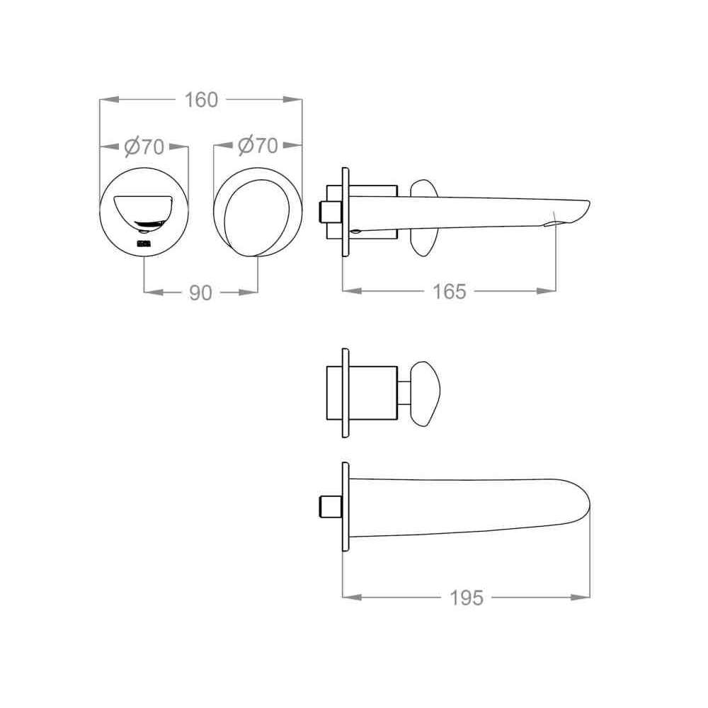 Bateria umywalkowa ścienna mosiężna, jednouchwytowa Fir Italia Synergy Stone 95 - 9518108