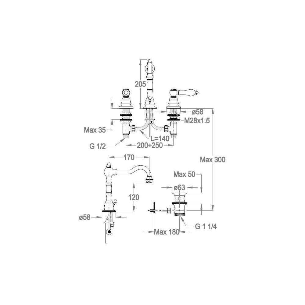 Bateria umywalkowa nablatowa 3-otworowa Fir Italia MELROSE 21 - 2112215_2