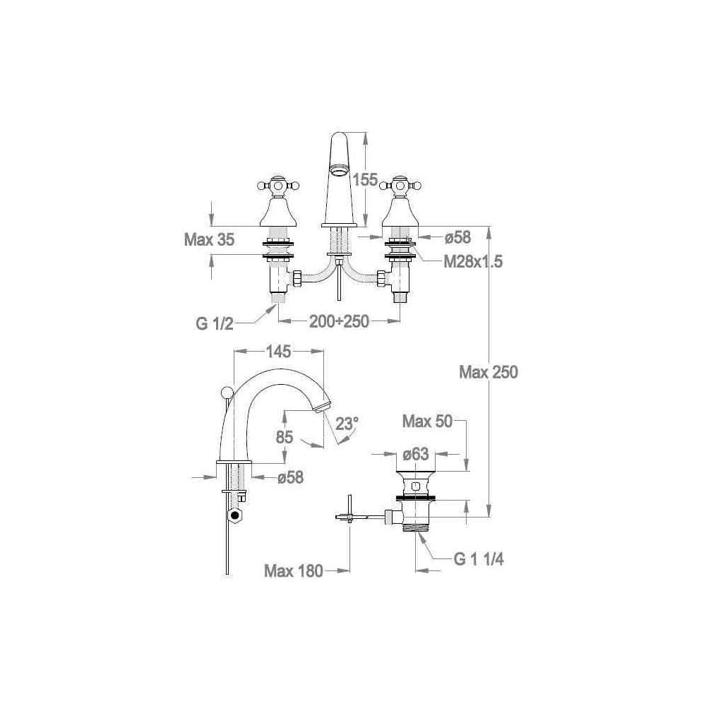 Bateria umywalkowa nablatowa 3-otworowa Fir Italia MERLOSE 22 - 2212235_2