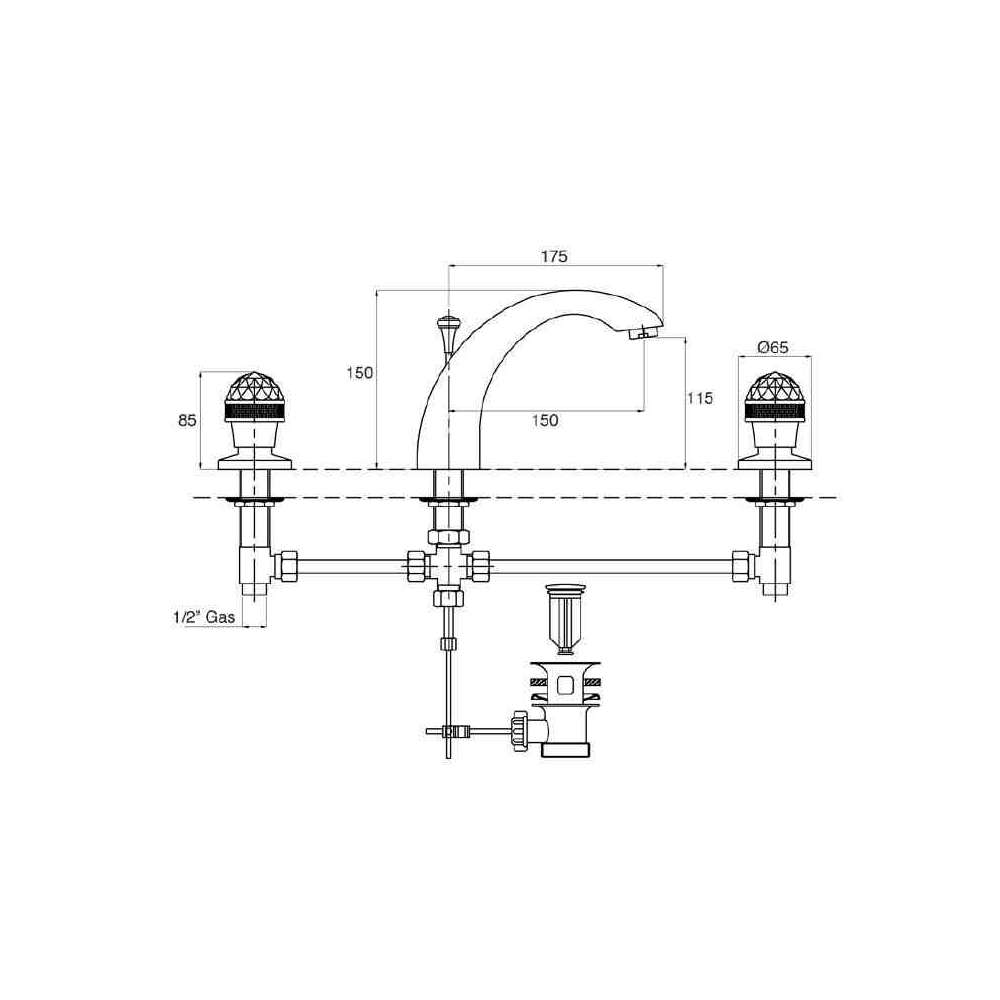 3-otworowa bateria umywalkowa z automatycznym odpływem Gentry Home Crystal